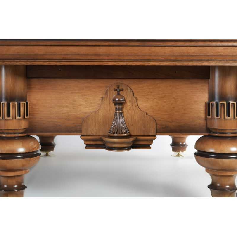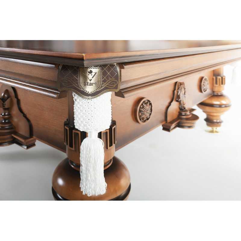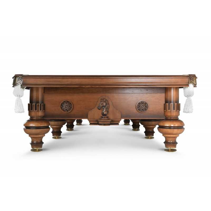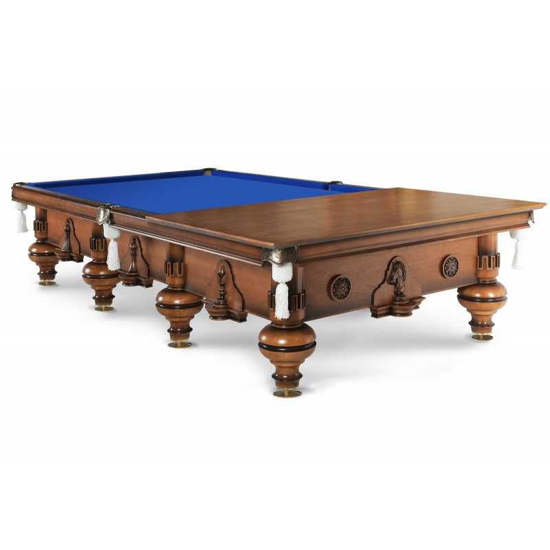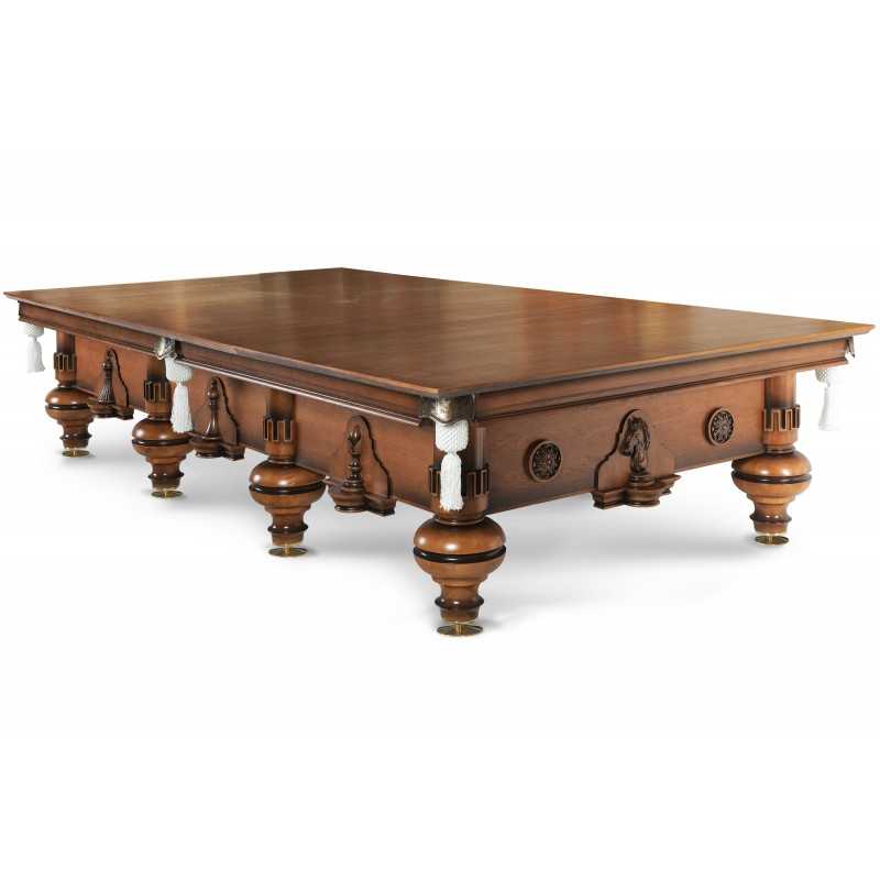 Эксклюзивность комплектующих и натуральные природные материалы и уникальные технологии изготовления. В построении используется технология безупречного крепления борта к плите - Mount Perfect, которая гарантирует повышенную жесткость конструкции. Лузы отделаны геральдическим тиснением, сетки ручного плетения. Стол укомплектован сукном Manchester 70 wool Yellow green competition. Лузы отделаны кожей ручной работы. Сетка х/б, большая. Скобы латунные. | 10 | 2,84х1,42 | Сланец "Orero" 40 мм | 38967 |