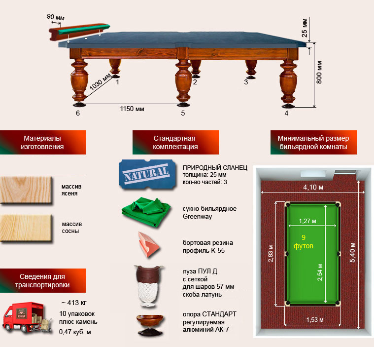 Доступные размеры стола: 8 футов, 9 футов, 10 футов, 12 футов