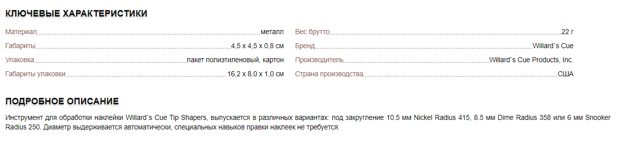 ИНСТРУМЕНТ ДЛЯ ОБРАБОТКИ НАКЛЕЙКИ WILLARD'S CUE TIP SHAPER LITTLE SNOOKIE 250