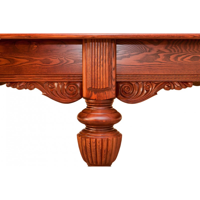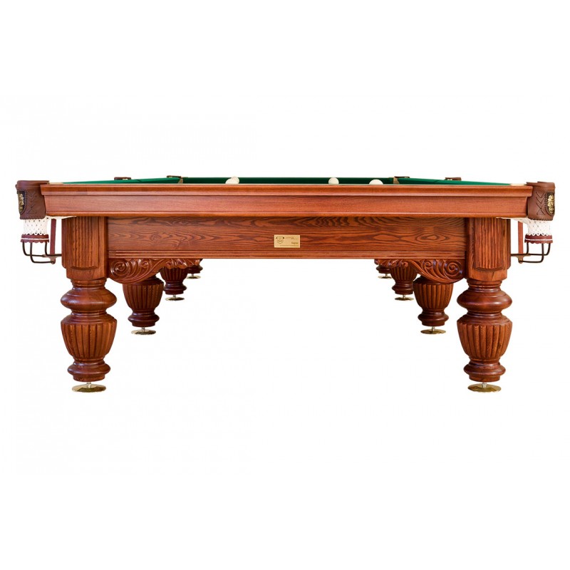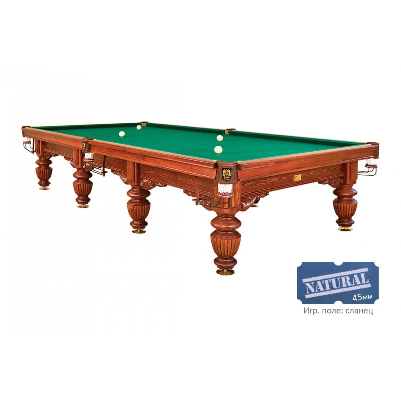 Бильярдный стол «Барон» компании «Руптур» — один из самых ярких и запоминающихся представителей коллекционной серии. Он отличается отборными материалами изготовления, великолепным оснащением и продуманным дизайном с большим количеством оригинальных элементов. Ноги стола выполнены из массива натуральной древесины и украшены изящными каннелюрами. Несмотря на пышный объем, они кажутся легкими и грациозными. Природную красоту дерева подчеркивает глубокий и выразительный резной орнамент.