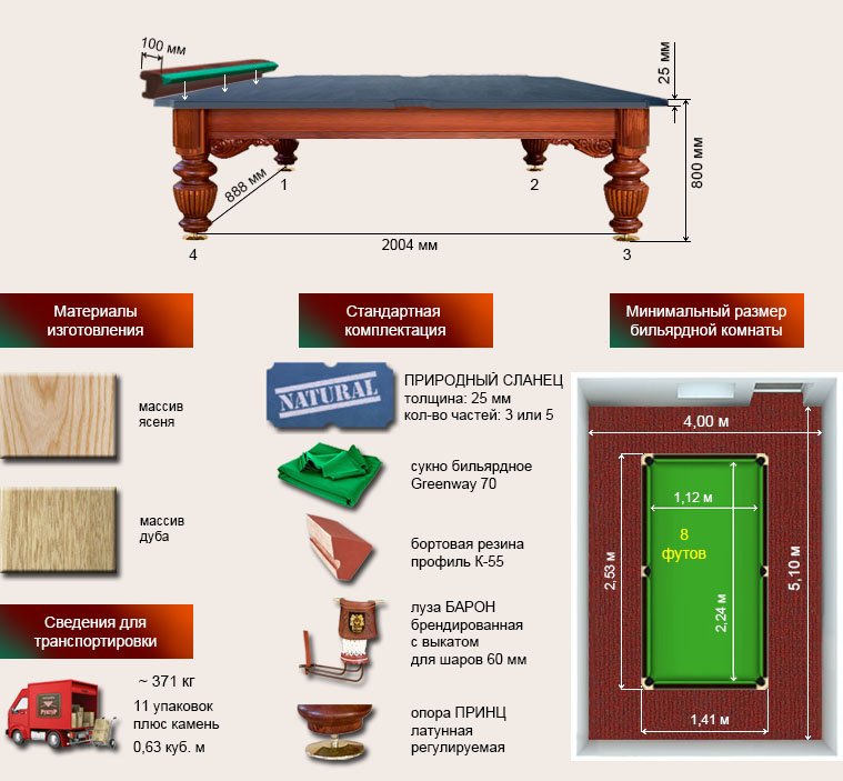 Бильярдный стол ”Барон” 8 футов рп/пул