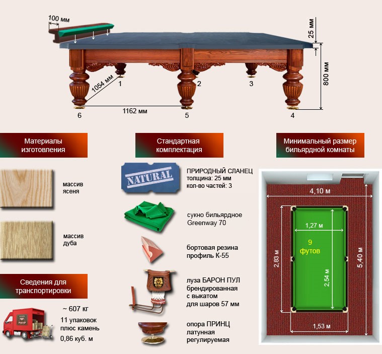 Бильярдный стол «Барон» компании «Руптур» — один из самых ярких и запоминающихся представителей коллекционной серии. Он отличается отборными материалами изготовления, великолепным оснащением и продуманным дизайном с большим количеством оригинальных элементов. Ноги стола выполнены из массива натуральной древесины и украшены изящными каннелюрами. Несмотря на пышный объем, они кажутся легкими и грациозными. Природную красоту дерева подчеркивает глубокий и выразительный резной орнамент.
