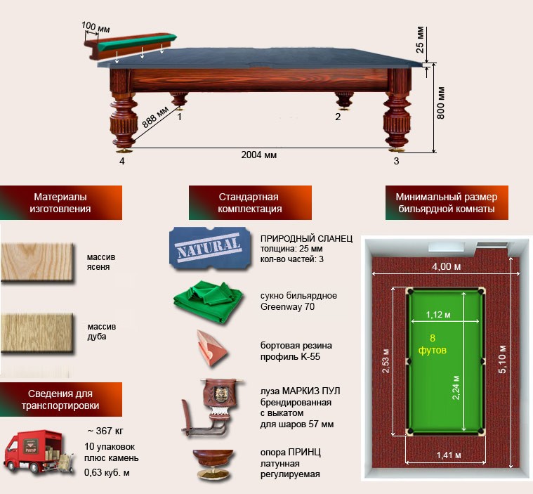 Бильярдный стол ”Маркиз” 8 футов рп/пул