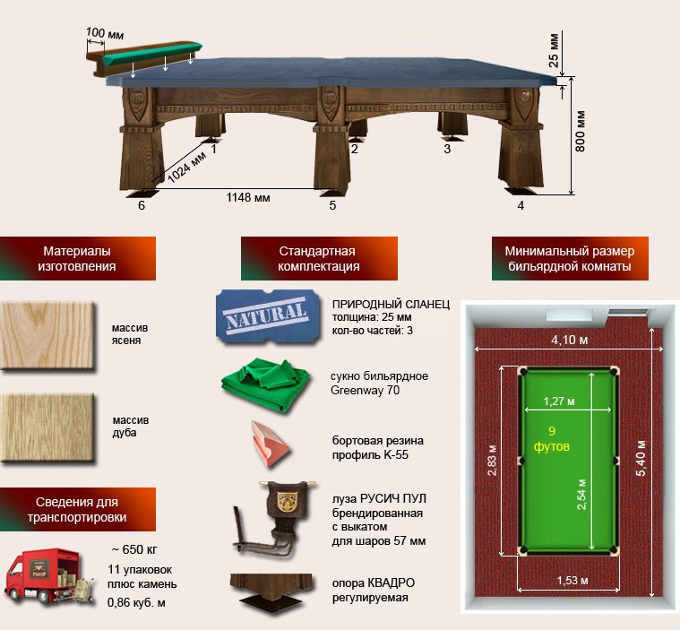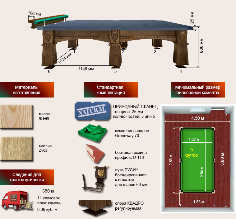 Бильярдный стол ”Русич” 9 футов