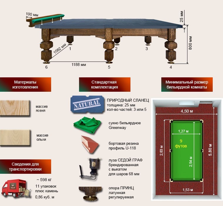 «Седой Граф» — это профессионально оборудованный коллекционный стол от компании «Руптур». Создатели придали его дизайну неповторимое обаяние антикварной мебели. Угловатые резные ноги со строгим ромбовидным орнаментом и прошедшие специальную обработку «состаренные» поверхности обеспечивают сходство стола с элитной старинной мебелью. Уделяя пристальное внимание декору, разработчики столь же скрупулезно поработали и над его конструкцией. Мощный каркас состоит из элементов, выполненных из отборного массива дуба или ясеня. Материал игрового поля — природный сланец с идеально ровными высокопрочными поверхностями.