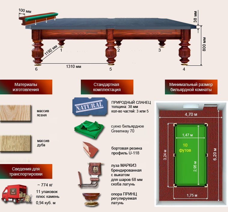 Бильярдный стол ”Маркиз” р.п. 10 футов