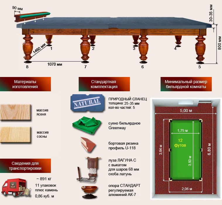 | Размер стола (футы) | 8 ФТ /9 ФТ /10 ФТ / 12 ФТ - на выбор |