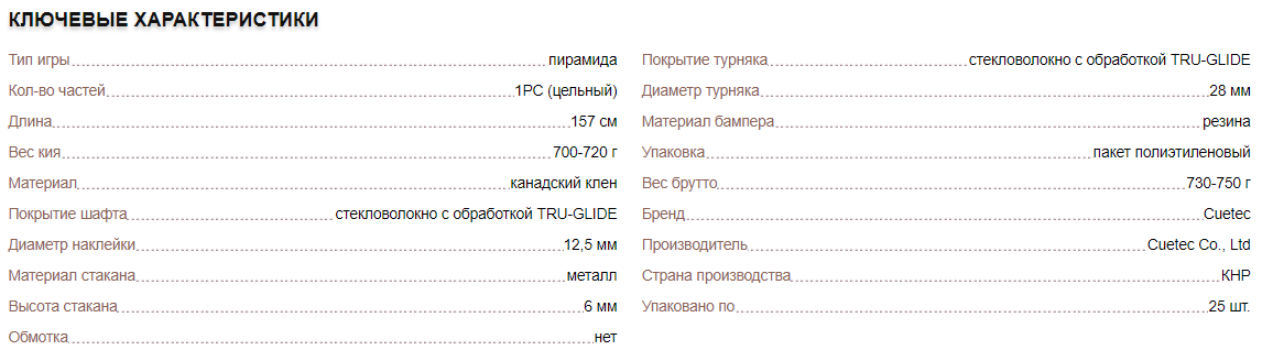 Односоставной кий Cuetec для русской пирамиды: