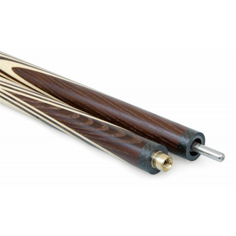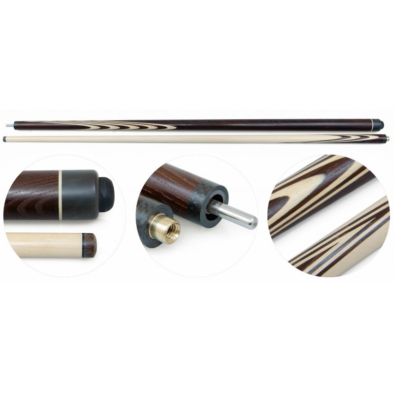 Двухсоставной кий ручной работы изготовлен из древесины высокой прочности и плотности. Это граб и термоясень. После обработки под давлением и высокими температурами ясень практически не уступает по плотности и твердости грабу и приобретает красивый цвет. В итоге кий обладает отличными игровыми параметрами и эстетично выглядит.