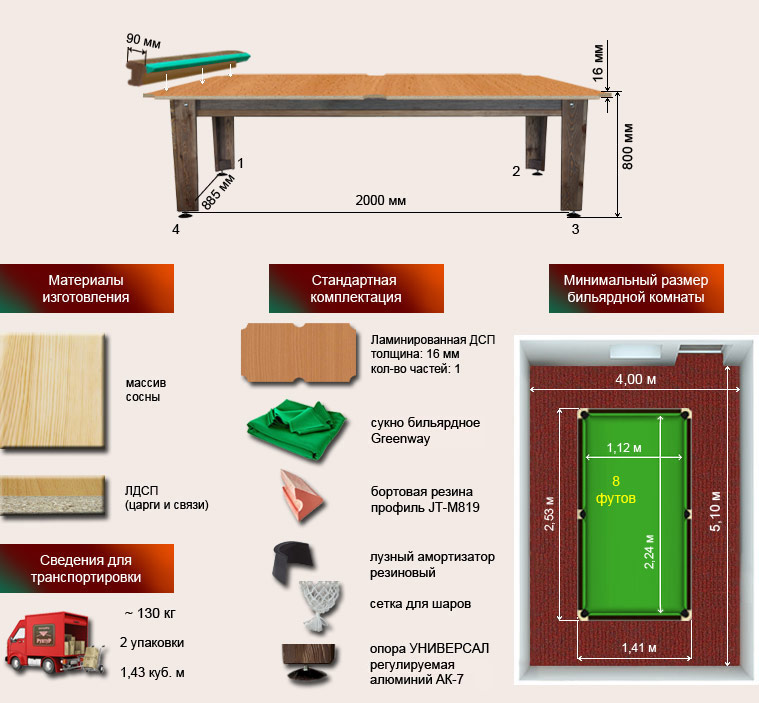 Компактный дизайн этого стола особенно порадует тех, кто не хочет отводить под бильярд отдельное помещение. Особая конструкция ножек, а также ЛДСП в качестве игрового поля и рамы придают легкость всей конструкции. Поиграв, вы без труда сможете отодвинуть бильярд к одной из стен и освободить нужное Вам пространство.