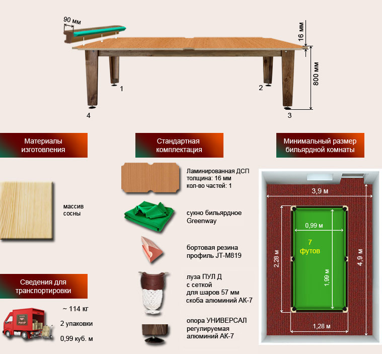 Бильярд может поставляться как в собранном, так и разобранном виде.