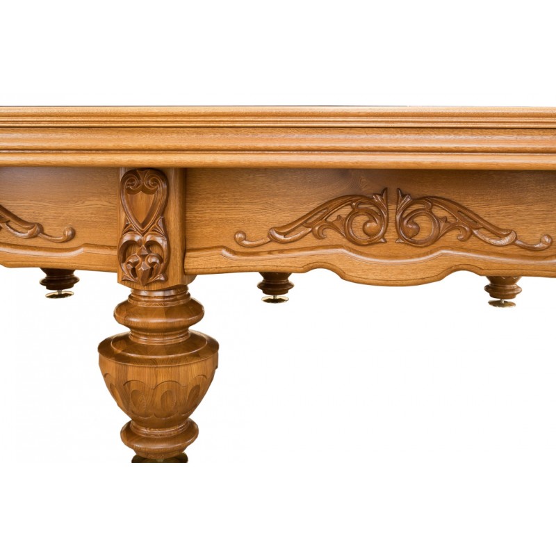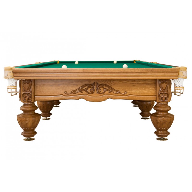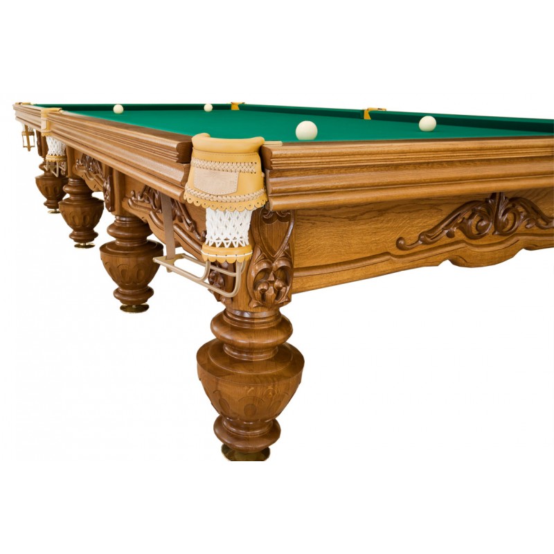 В оформлении коллекционного бильярдного стола «Цезарь» компании «Руптур» использованы приемы, характерные для классического античного искусства. Ноги стола повторяют изгибы древних амфор, а ручная резьба напоминает рельефные скульптуры римского храма. Все детали выполнены из массива дуба или ясеня без использования металлического каркаса. Благодаря особой полировке, сквозь несколько слоев специального лакового покрытия прекрасно видно изысканный рисунок и фактуру отборной древесины.