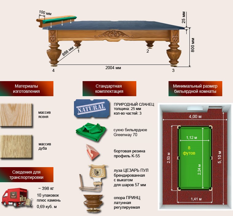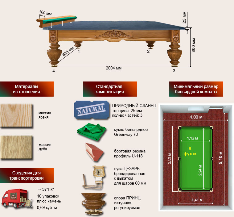 Бильярдный стол ”Цезарь” 8 футов рп/пул
