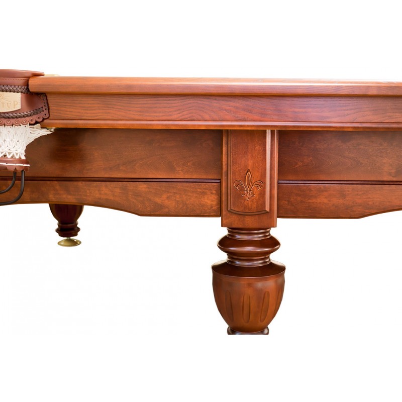 «Герцог» — это спортивный стол компании «Руптур», оформление которого максимально приближает его к изделиям коллекционной серии. Абсолютную устойчивость и высокую несущую способность стола обеспечивают основательные ноги с резьбой, напоминающие элегантные вазы. Мощная деревянная рама декорирована горизонтальной арочной накладкой. Материал изготовления — отборный массив ольхи, ясеня или дуба, прошедший многодневную сушку по специальной технологии в современных сушильных камерах.