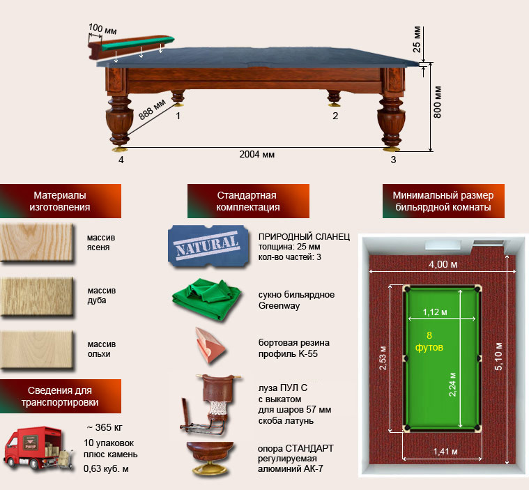Бильярдный стол ”Герцог” 8 футов рп/пул