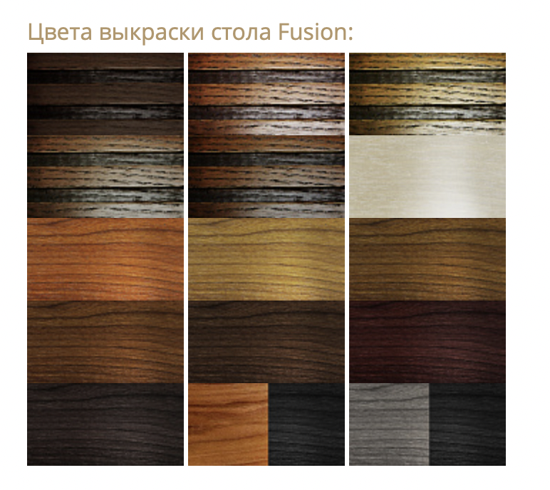 В производстве стола Fusion использованы самые передовые технологии построения бильярда, а в комплектации - самые высококачественные материалы. Отборный массив ясеня, бортовая резина Start Super Pro, стойкое к износу сукно Manchester, а в основании игрового поля природный сланец ORERO.