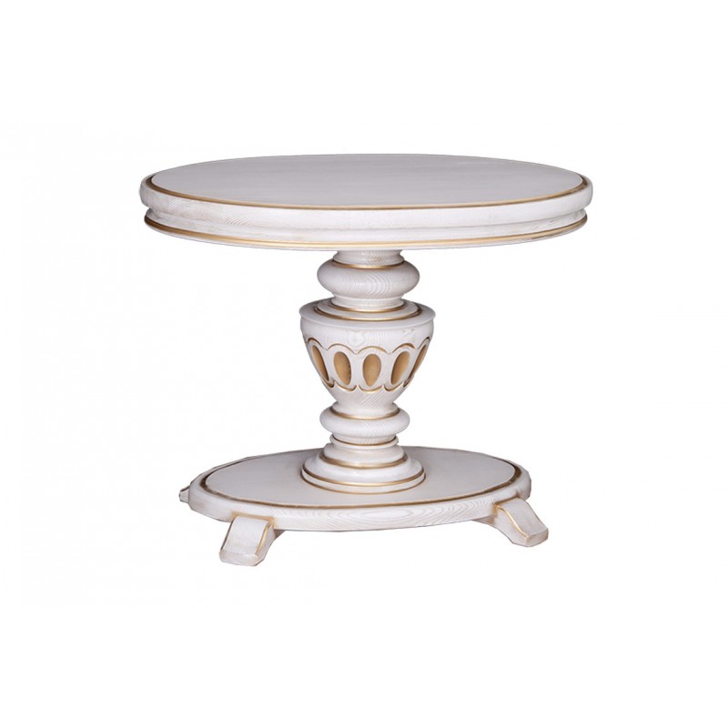 Столик выполнен из массива ясеня или дуба – элитных материалов, используемых в изготовлении всей коллекции. Фантазийная резьба ручной работы придает миниатюрному столику еще большую утонченность, а нежное декоративное покрытие подчеркивает естественный рисунок благородной древесины. Высочайшее качество изделия подтверждено сертификатом качества.