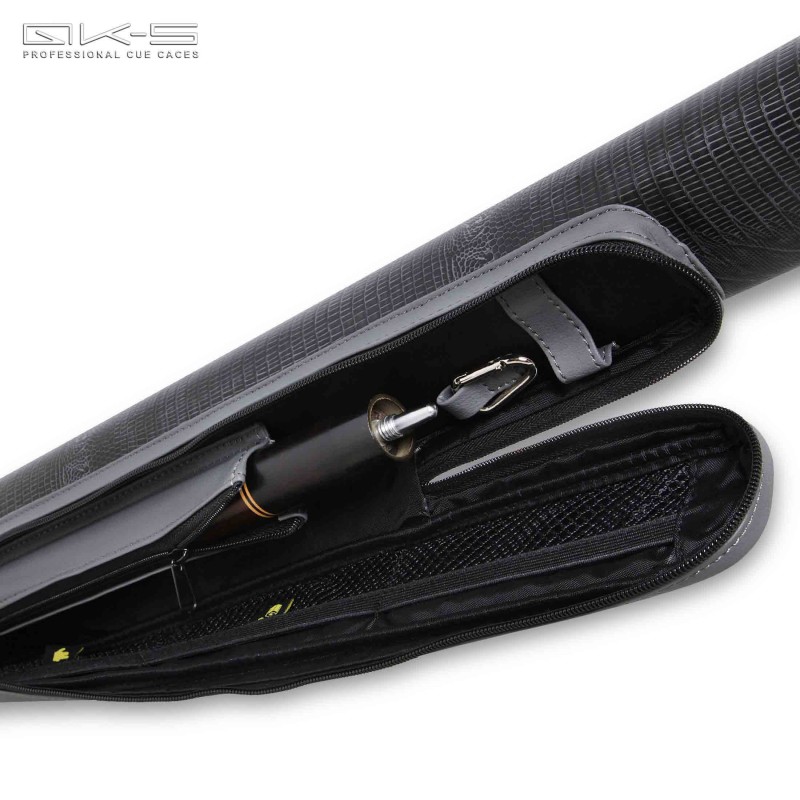 Модель QK-S Hammer разработана для тех, кто любит минимализм в дизайне и максимальный комфорт при эксплуатации. Каждый из наружных карманов тубуса внутри оснащен большим количеством дополнительных приспособлений для распределения содержимого с учетом особенностей хранения различных аксессуаров: удлинитель для кия дополнительно закрывается и надежно фиксируется на "молнию" в своем отделении, при этом рядом в секциях сетчатого кармана на резинке можно разместить мел, наклейки и зачистки, кроме того, здесь же имеется карабин для крепления ключей; внутри маленького кармана также имеются 2 дополнительных отделения, каждое из которых имеет свой способ фиксации. И все эти дополнительные отделения снабжены ярлычками-подсказками, чтобы, не задумываясь, все разложить по своим местам.